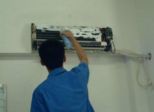 | 梅县空调维修师傅给梅县用户上门维修清洗空调。 |